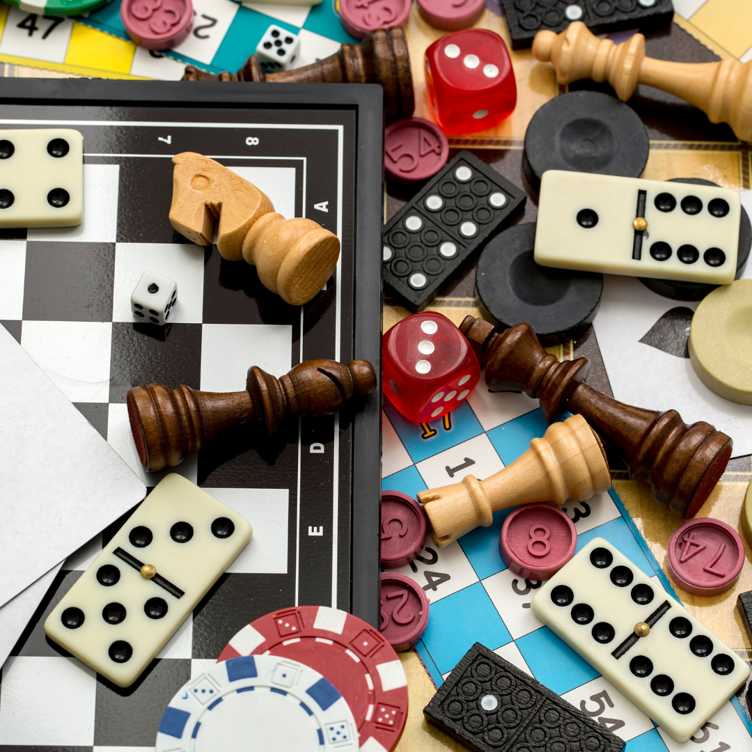 Play items, puzzles, board games, and educational toys.