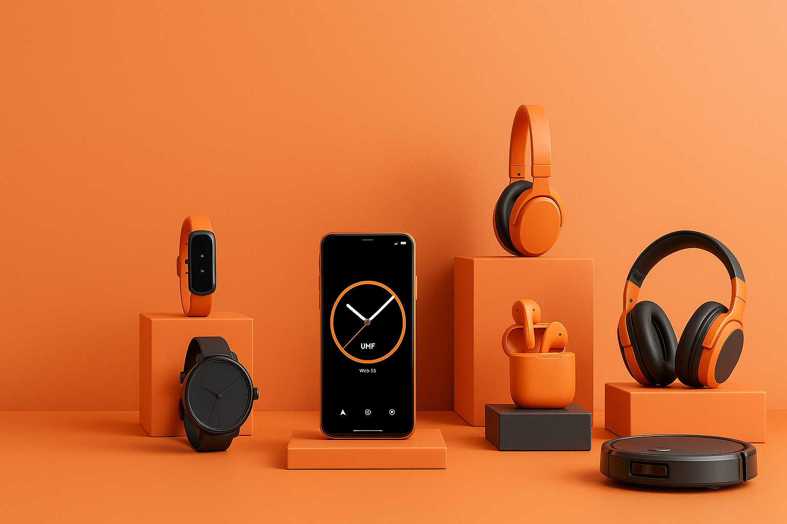 Devices and accessories like phones, laptops, cameras, and smart gadgets.