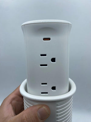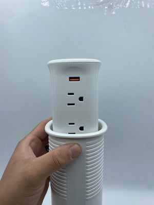 - The pop up socket is built in spring loaded, fully retractable mechanism, keep your living and working area tidy and clean. No more messy cables and plugs. Hide it when you don't need it. Charge your phone or bluetooth earphone when it's in flat status.