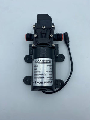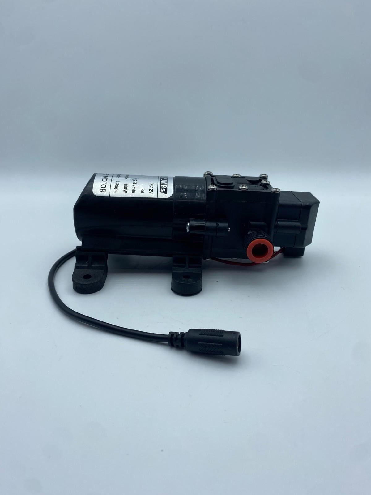- Voltage: DC 12V; Power: 100W; Flow: 1-7L/min(at different status) There are no extra host fitting on the pump, it will only fit the hose that it came with