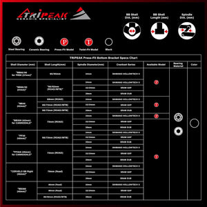 TRiPEAK Press-Fit Bottom Bracket for BB90/95, BB86/92, BB30, PF30, BB Right, BB386 with Steel Bearings for 24mm Shimano Hollowtech II Road/MTB Crankset, Compatible w/Trek, Cannondale, Cervelo Frame