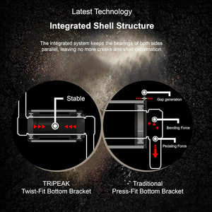 - Integrated shell structure wards off shell deformity frequently found on traditional Press-Fit BBs. Maximum power transmission efficiency and extended BB longevity are guaranteed.
